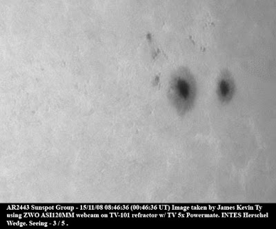 The sky this morning is partly cloudy and I'm also having a bad migraine from my right temple probably due to my sinusitis :( I just quickly check up on the Sun and snap AR2458 Sunspot Group before calling it a session as the headache is a bit painful. Anyway, more bed rest needed :(